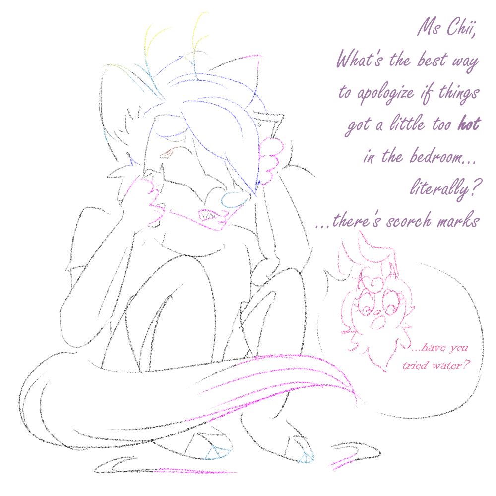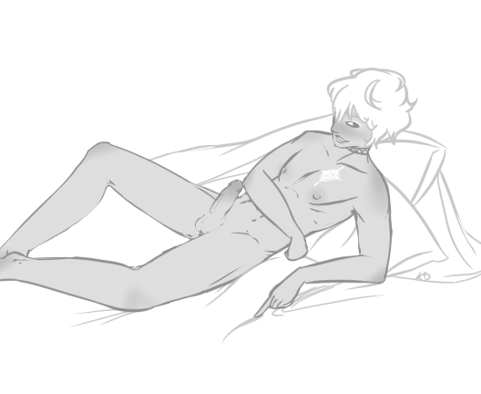 "Oh… mm," they hummed, tearing it open and peeking at it to see which side. They traced their fingertips down his cock, getting the size of him. Oh, he'd be good to take.