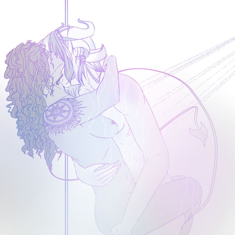 When he released, the sound of it was lewd, wet, a pop that seemed to echo in their ear. They made a shocked sound as he was back to it for more kisses laid against, around their swollen nipples.