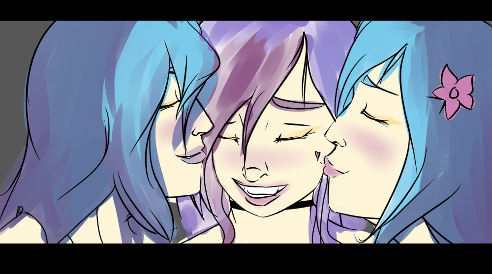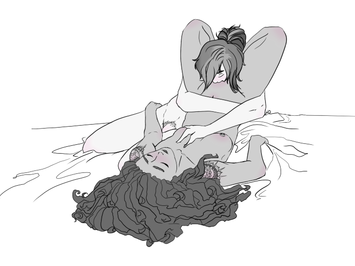 "Mm… here, let me get deeper," he said, had them tight in his arms, held flush against himself as he turned, lay them down onto the couch.