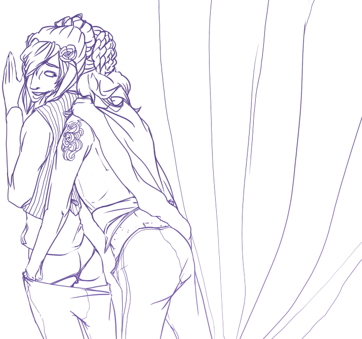 "I was guarding you," he said, slipping buttons on their shirt, baring more and more of their undershirt. He shucked the shirt from their shoulders, yanked the undershirt from its tuck, baring their breasts.